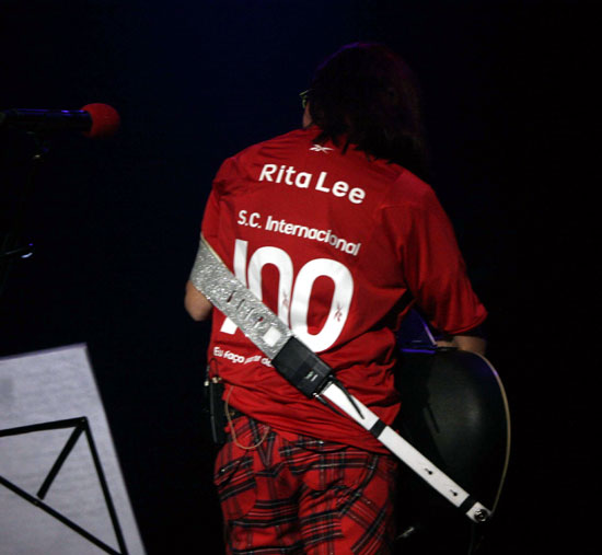 Não é de se surpreender que alguns torcedores de outros clubes, principalmente do co-irmão, resmungaram, ensaiaram algumas vaias... Rita Lee não se importou e seguiu o discurso exaltando o seu coloradismo: "O Nilmar marcou um golaço no Corinthians do meu filho, por mim não tem problema, o meu Inter pode (a vibração na plateia foi geral, abafando qualquer chiado). Meu pai também colorado gostou. Desculpem, mas esse é o Internacional campeão dos campeões, o Colorado dos Pampas campeão de tudo". Os colorados foram ao delírio. Valeu, hein?! Entre uma música e outra, até mesmo durante algumas de suas canções mais famosas, Rita Lee incluia o Inter nas melodias, palavras do dicionário colorado eram cantadas por ela. Ousada, a rainha do rock brasileiro em 2005 já havia vestido uma camisa com o distintivo do Clube e os dizeres 'Primeira Divisão'. Não bastasse o excelente show da noite desta sexta-feira, Rita Lee deu esse maravilhoso e impagável presente ao público gaúcho e colorado.