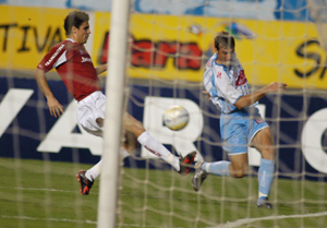 Aos 31min45seg, Tinga fez jogada sensacional pela direita, dando uma meia-lua em um zagueiro, entrando na área e cruzando na cabeça de Fernandão, que concluiu com precisão: 1 a 0.