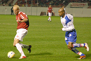 Rafael Sobis tenta a jogada: Inter não conseguiu evitar a derrota no Beira-Rio