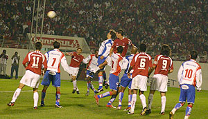 Aos 34min50seg, Alex cruzou, a zaga cortou errado e a bola sobrou para Rafael Sobis cabecear por cima. Em seguida, o zagueiro Lombardi saiu lesionado para dar lugar a João Paulo. Aos 37min35seg, Jorge Wagner cobrou falta e Índio cabeceou com muito perigo no último lance importante da primeira etapa.