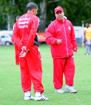 Auxiliar técnico Cléber Xavier conversa com Taison