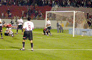 Aos 21min30seg, Jorge Wagner cobrou escanteio com curva e quase marcou um gol olímpico. O zagueiro Índio ainda tentou alcançar a bola, mas não conseguiu. Aos 23, Sobis recebeu na área e chutou no corpo de um zagueiro. No rebote, o próprio Sobis concluiu por cima.
