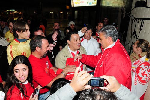 O atacante Taison, goleador do Inter na temporada e da Copa do Brasil, foi um dos mais assediados pela torcida, que gritou o nome de vários jogadores do saguão até o ônibus que levou o grupo para o hotel. Durante o trajeto percorrido pelo ônibus, torcedores acompanharam de carro. Alguns possuíam até o hino colorado nas buzinas acionadas várias vezes. Todo esse apoio deve ser um aperitivo do que o Inter deve encontrar no Couto Pereira. É esperada a presença de mais de 3 mil colorados.
