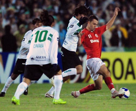 Sem poder penetrar na área do Inter, o Coritiba buscava cruzamentos para a área e jogadas de bola parada. Daí surgiu o bom posicionamento da defesa na bola aérea, ganhando praticamente todas. E quando tinha a bola, a tática era tocar a bola, de pé em pé, gastando o tempo e arrefecendo a equipe adversária.