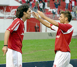Fernandão (E) e Sobis: dupla de ataque foi decisiva na goleada sobre o Figueirense