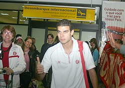 Granja desembarca no aeroporto: Inter voltou da Argentina com o pensamento no Brasileirão