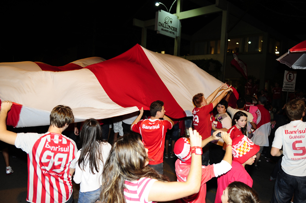Uma festa tomou conta das ruas de Bento Gonçalves na noite desta segunda-feira. Com bandeiras, faixas, cartazes, guarda-sóis, bumbos, sinalizadores, gritos de guerra e muito entusiasmo, assim a torcida colorada pintou a cidade de vermelho para receber o Internacional. Por volta das 21h50, fogos estouraram no céu estrelado anunciando a chegada do Campeão do Tudo. A famosa ação 'Ruas de Fogo’ direcionou com sinalizadores luminosos o ônibus que trouxe a delegação até o Hotel Dall'Onder, QG do Inter nesta segunda parte da pré-temporada. Foi de arrepiar.