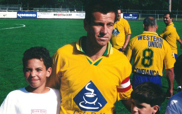 Caio (E), aos dez anos de idade, entrou em campo com Dunga, nos Estados Unidos (foto/divulgação)