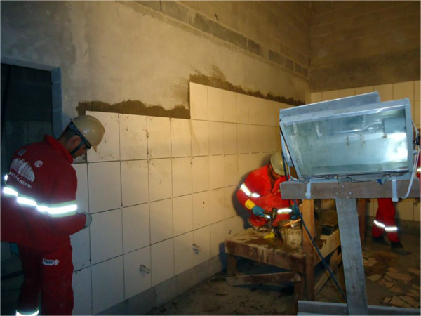 Sanitários estão recebendo as instalações hidráulicas e revestimento de cerâmica