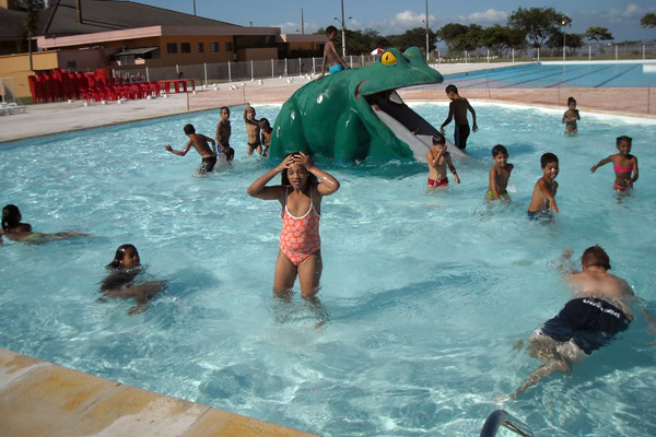 Crianças do Projeto aproveitam os dias quentes nas piscinas do Parque Gigante