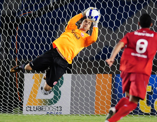 Goleiro Michel Alves entrou no lugar de Lauro e fez belas defesas como a ponte na foto acima