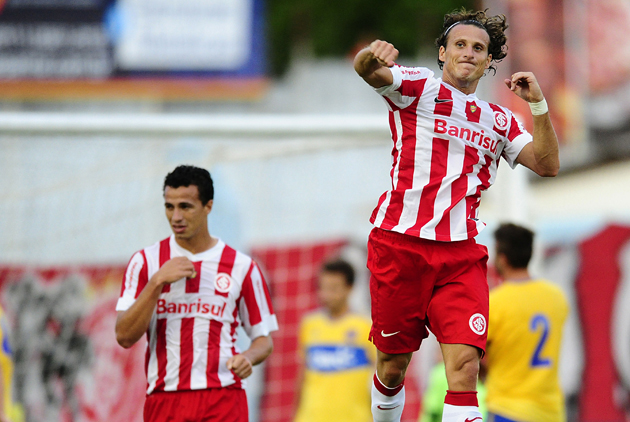 Diego Forlán está, aos poucos, retomando o bom futebol que o consagrou como o melhor jogador da Copa do Mundo de 2010. Na última quarta-feira, o camisa sete do Inter, serviu a seleção do Uruguai, em um amistoso contra a Espanha, no Catar. Ele retornou a Porto Alegre na quinta-feira à noite, treinou na sexta e entrou em campo no sábado. As principais chances de gol do Inter no primeiro tempo saíram dos pés do uruguaio. Para coroar o bom momento, nada melhor que marcar um gol. E ele veio aos 25min, Willians lançou Fabrício pelo lado esquerdo, que cruzou na medida para Forlán que, de primeira, mandou no canto esquerdo de Jonatas. 1 a 0 Inter!