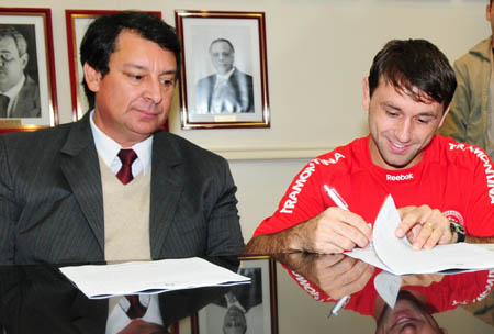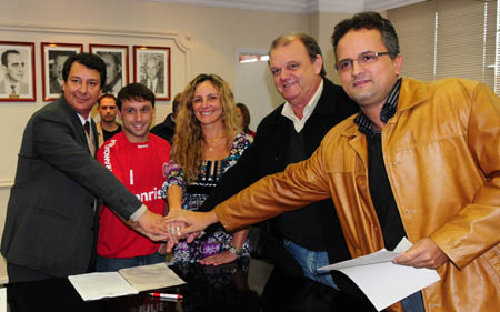 Campeão mundial João Derly (D) assina parceria com o Internacional