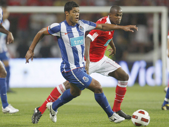 Airton (D) marcando Hulk no clássico Benfica-Porto (foto: divulgação/SL Benfica)