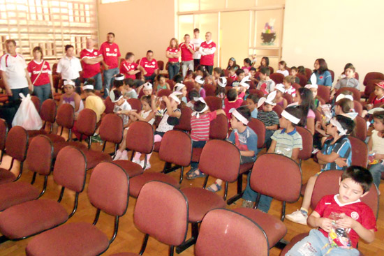 O consulado de Santo Ângelo e a Associação dos Colorados da cidade realizaram na última quarta-feira (27/03), nas dependências do Lar da Menina de Santo Ângelo, uma animada festa de Páscoa para os alunos do ensino fundamental da Escola Gildo Castelarin. Foram oferecidos cachorro-quente, refrigerante e cestas de Páscoa. A diversão ficou por conta das apresentações das crianças.