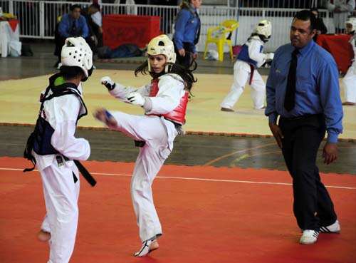 Foto das competições de taekwondo no Gigantinho