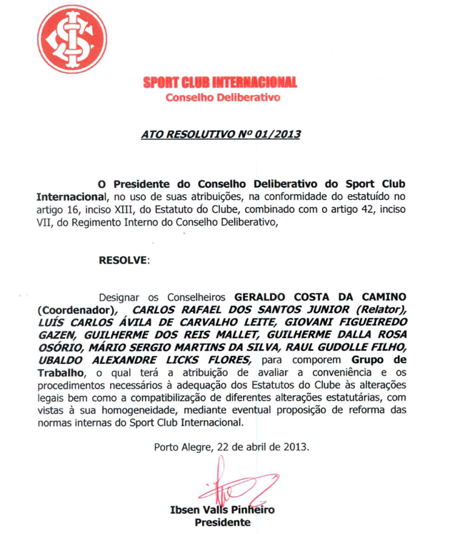 Ato Resolutivo nº 01/2013 - Conselho Deliberativo