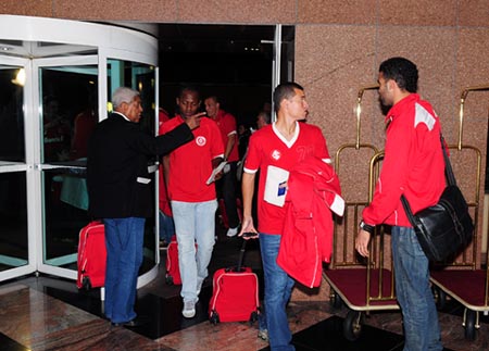 O volante Guiñazu e o goleiro Lauro foram os escolhidos pela assessoria de imprensa para conceder entrevistas aos jornalistas na chegada. “Amanhã é uma decisão. Temos que jogar a vida”, resumiu o capitão Guiñazu, que completa 100 partidas pelo Inter na decisão. Os jornalistas direcionaram algumas perguntas para a ausência de quatro titulares (Kleber e Nilmar, na Seleção, Bolívar, suspenso, e D´Alessandro, retornando de lesão). “Estamos muito confiantes na força do grupo. Os jogadores que estão entrando estão se saindo muito bem”, disse o goleiro Lauro, um dos principais destaques da equipe na campanha da Copa do Brasil.