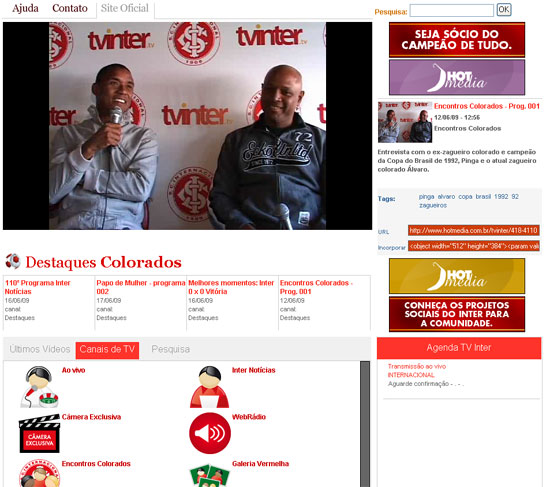A TV Inter, a TV oficial do Sport Club Internacional, está ampliando sua grade de programação. Agora, através do portal http://www.tvinter.tv/, o torcedor colorado fica sabendo de tudo o que acontece no seu clube do coração. Além do programa Inter Notícias, no ar há dois anos, outras 13 atrações já estão disponíveis.