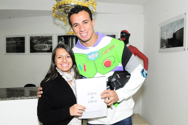 Acompanhada pelo pai Luis Osório, Keyssa foi na última quarta-feira (8/5) até o CT do Parque Gigante retribuir a homenagem feita pelo camisa 9. Esbanjando simpatia, tirou fotos com todos os jogadores e criou um sinal característico para cada um deles, inclusive Dunga. O preferido? Leandro Damião. Além da homenagem, fazendo o sinal do nome dela durante a comemoração do gol, o centroavante ainda lhe presenteou com duas camisas autografadas.