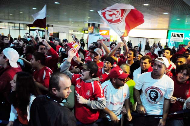 Os jogadores do Inter sentiram o calor da torcida colorada no desembarque no Aeroporto Salgado Filho, na tarde desta quinta-feira. Cerca de 100 torcedores recepcionaram a delegação que vinha de São Paulo com faixas e cânticos de incentivo, mostrando muita confiança em uma reação na partida de volta contra o Corinthians, no dia 1º de julho, no Beira-Rio.