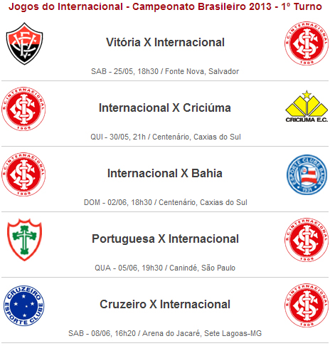 O Internacional concentra agora suas energias na preparação para a partida de estreia no Campeonato Brasileiro, marcada para o dia 25 de maio (sábado), quando enfrenta o Vitória, na remodelada Fonte Nova, em Salvador. Na segunda e terceira rodadas, o Inter atua Centenário contra Criciúma e Bahia, respectivamente.
