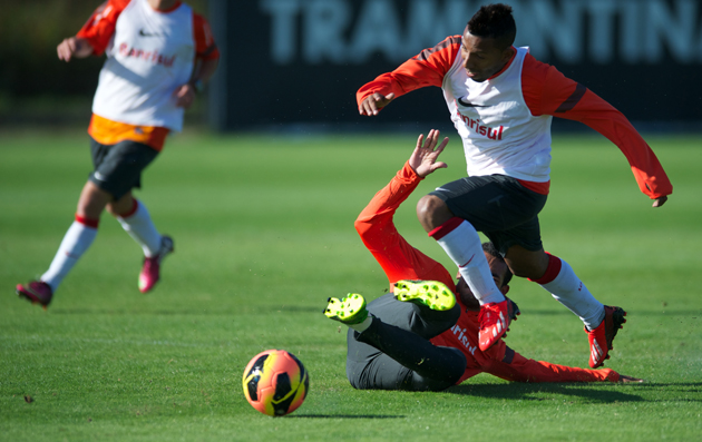 Vitor Júnior participou do treino coletivo da manhã desta sexta-feira