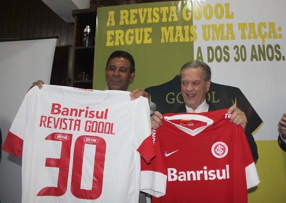 O Internacional esteve presente no evento que celebrou os 30 anos da Revista Goool na última sexta-feira (17/5), em Porto Alegre. O clube presentou o editor da revista José Aveline com duas camisetas personalizadas com o nome da publicação e o número 30. O ex-presidente Arthur Dallegrave, falecido em 2008, o presidente do Conselho Deliberativo Ibsen Pinheiro e o ídolo eterno Valdomiro, capa do primeiro número da publicação, foram lembrados e homenageados durante o evento.