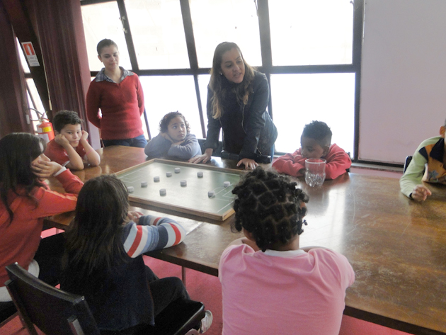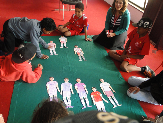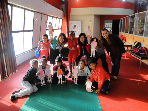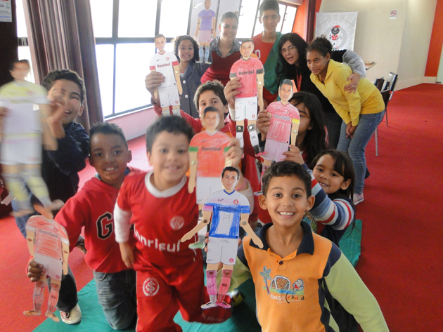 A proposta tinha como objetivo abordar a importância do trabalho em equipe e a função de cada jogador dentro de campo, os mediadores do Museu construíram com os coloradinhos diferentes esquemas táticos. A cada questionamento e nova informação as crianças foram instigadas a refletir sobre o futebol e a construir, de maneira participativa, novos conhecimentos. A proposta lúdica se concretizou com a confecção dos ‘minicraques’, bonecos em E.V.A. com o rosto dos jogadores, e com a construção de um painel em feltro contendo a escalação tática proposta pelas crianças para o time. Nesse momento, cada um tornou realidade o sonho de ser jogador de futebol, demonstrando sua preferência por cumprir a função de ídolos como D’Alessandro, Leandro Damião, Muriel, entre outros.