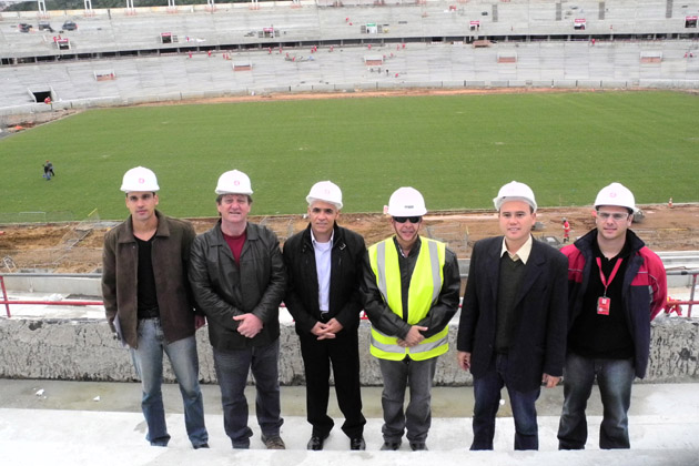 As obras no Beira-Rio não param. Todos os detalhes são importantes. Por isso, na manhã desta quarta-feira (22/5), representantes do Exército visitaram o estádio. Com o intuito de conhecer os novos acessos para autoridades, as questões de segurança e monitoramento, a comitiva chefiada pelo general do exército Francisco Elano Alves percorreu as arquibancadas, portões de acesso e gramado finalizando a vistoria no Centro de Visitantes.