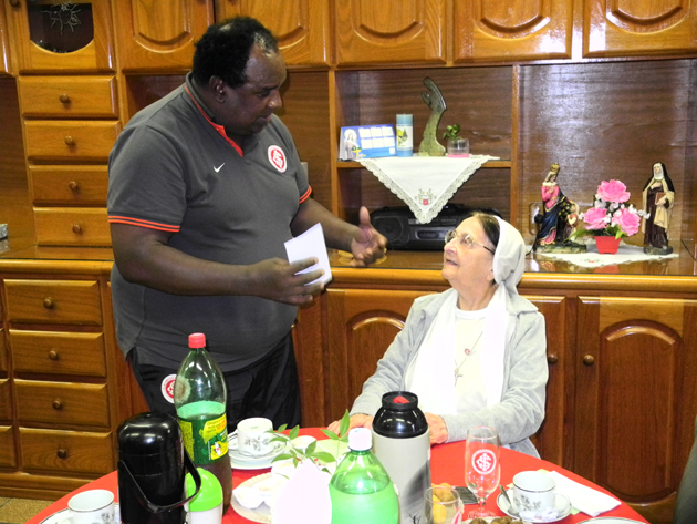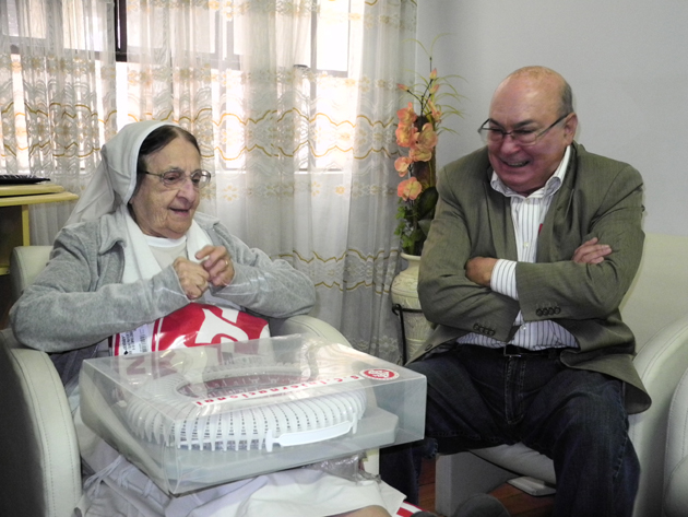 Em comemoração ao aniversário da Irmã Inah, a colorada mais antiga que se tem conhecimento, o Internacional, representado pelo Secretário-Geral Gelson Pires, o ex-volante Caçapava, o vice-presidente de comunicação social Norberto Guimarães e a diretora feminina Helena Lacher, visitou nesta quarta-feira (29/5) a Congregação das Irmãs Terezianas a fim de presentear a torcedora.