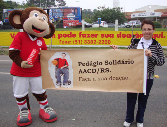 O Internacional mais uma vez comprovou que é campeão também fora de campo, ao participar, por meio da vice-presidência de comunicação social – também engajada nas ações sociais do Clube –, do Pedágio Solidário da Associação de Assistência à Criança Deficiente de Porto Alegre (AACD).