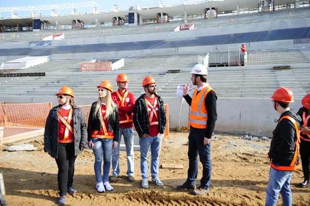 Os cinco ganhadores visitaram o estádio com o gerente de obras, Lucio Matteucci