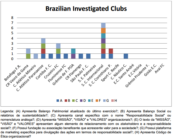 Desta forma, o Internacional é, no Brasil, o clube com melhores estratégias relacionadas à responsabilidade social corporativa, demonstrando possuir uma gestão compartilhada e voltada para a comunidade (veja gráfico abaixo).