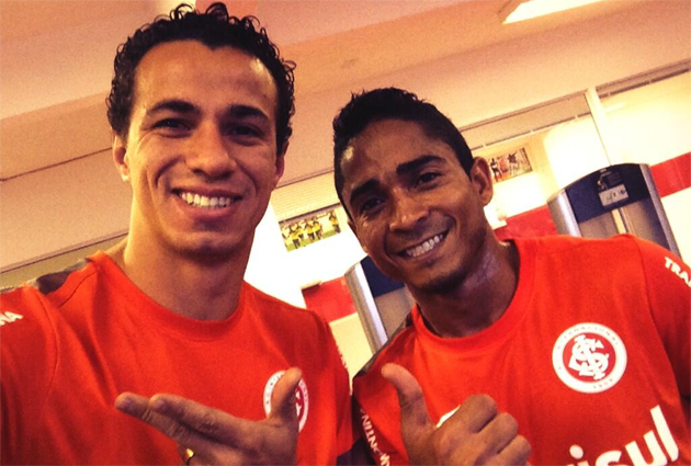 Damião (E) postou foto no seu perfil no Twitter junto ao novo companheiro Jorge Henrique e a seguinte mensagem: "Folga, que nada...seja bem-vindo, irmão @_jorgehenrique. Um campeão chegando para continuar sendo campeão #vamointer".