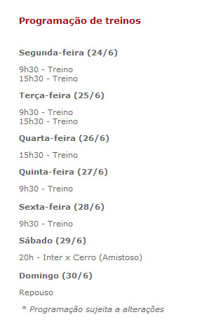 O grupo colorado segue os treinamentos da intertemporada. O técnico Dunga terá a semana cheia para preparar a equipe para as disputas do Campeonato Brasileiro e da Copa do Brasil.