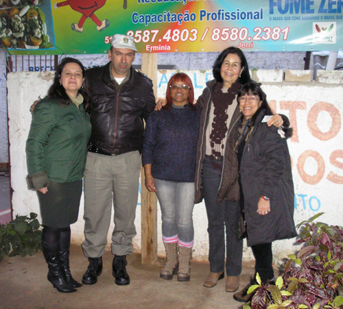 O Núcleo Restinga Velha, dirigido por Dona Hermínia, que igualmente atende a comunidade, também foi visitado. A ação contou com o apoio incansável do coronel Amorim, que ficou o tempo todo com a equipe colorada.