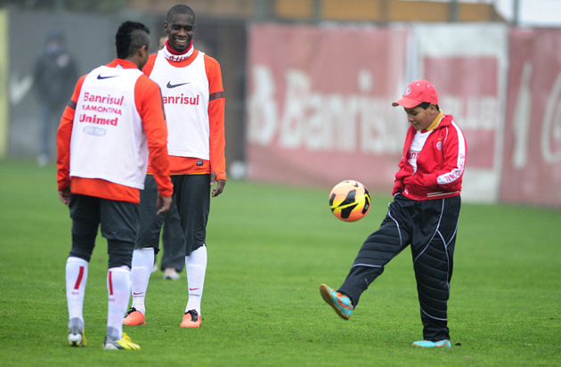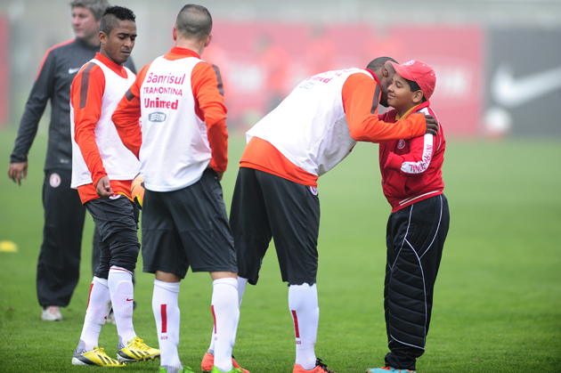 Após o treino desta quinta-feira (27/6), os jogadores do Inter receberam uma visita muito especial. O colorado André Vedoy da Rosa, 9 anos, conheceu seus ídolos e deu uma aula de superação.