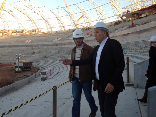 Consultor de estádios da FIFA, Charles Botta (D), realizou uma visita técnica