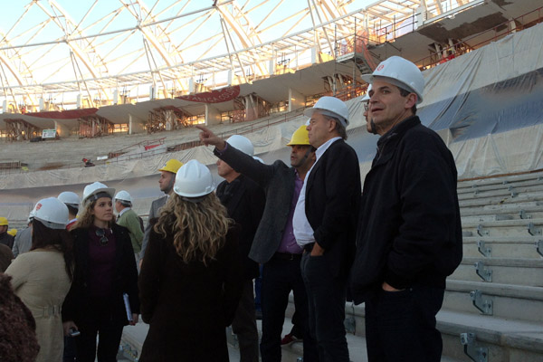 Logo após o tour, a comitiva se reuniu na sala da presidência para avaliar a visita e o andamento das obras. Botta declarou que o projeto do Estádio é único, contando com uma bela arquitetura e uma localização privilegiada. O avanço das obras e cumprimento do cronograma foram outros pontos positivos avaliados pelo consultor de estádios. A última reunião do grupo no Gigante foi no final de abril.