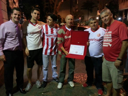 A vice-presidência de comunicação social do Internacional, em conjunto com o consulado do Rio de Janeiro, entregou ao sócio Juraci Nunes Cavalheiro, nesta quarta-feira (10/7), logo após o jogo contra o América-MG, pela Copa do Brasil, um diploma de reconhecimento pelos serviços prestados ao Clube. Cavalheiro possui um quiosque na praia do Leme e mantém quatro bandeiras do Inter permanentemente hasteadas em seu estabelecimento, fato que sempre chama a atenção de quem passa pelo local.