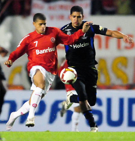 D'Alessandro tenta a jogada sobre o adversário equatoriano: Inter foi surpreendido no Gigante