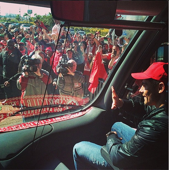 Torcida colorada compareceu em peso ao aeroporto para dar boas-vindas ao meia