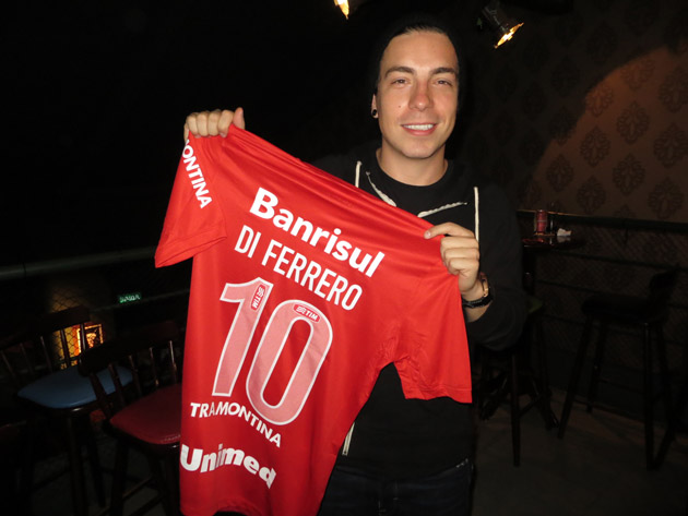 O Internacional entregou na noite da última segunda-feira (29/07) uma camisa oficial personalizada do Clube ao vocalista da NX Zero, Di Ferrero. A sugestão de presentear o vocalista chegou ao marketing através de um sócio colorado. Em uma entrevista, o músico declarou que seu time no Rio Grande do Sul é o Sport Club Internacional. Feliz com a camisa, elogiou o marketing do Inter, as obras de modernização do estádio, o plano de sócios e o novo uniforme do Clube.