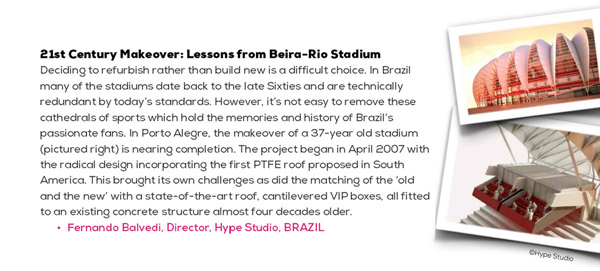 O arquiteto Fernando Balvedi, Diretor da Hype Studio Arquitetura, irá palestrar no Stadium Business Design & Development Summit 2013 em Nice, na França. Trata-se de uma das mais importantes conferências sobre estádios do mundo. O evento ocorrerá nos dias 9, 10 e 11 de outubro na área de convenções do novo Allianz Riviera Stadium. Fernando apresentará o Projeto de Modernização do Beira-Rio, de autoria da Hype Studio. Será debatido o case de sucesso da transformação de um estádio brasileiro dos anos 60 em um estádio de Copa do Mundo.