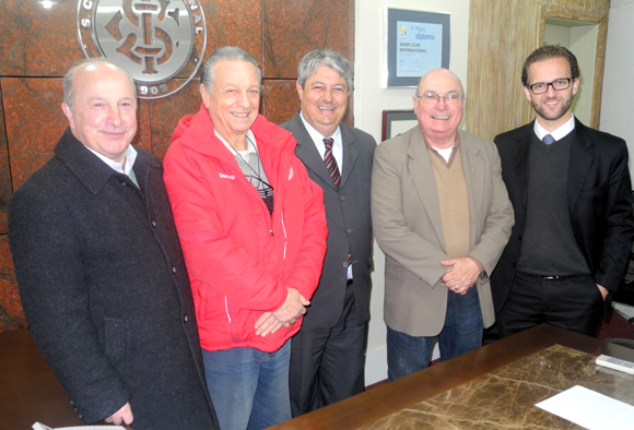 Da esq. para dir.: Luiz Antônio Barbacovi, José Antônio Vidal, Nestor Tissot, Gelson Pires e Bruno Irion Coletto no encontro ocorrido no Beira-Rio