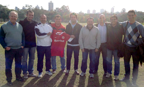 Da esq. para dir.: Dr. Alberto Monteiro (UFRGS), Felipe Kssesinski (SCI), Dr. Jorge Castelo (Sporting), Rodrigo Aragonez (SCI), Ricardo (Quest), Dr. Cícero Morais (UFRGS), Carlos Leiria (SCI), Rafael Bertei (SCI) e Luís Fernando Ortiz (SCI). O gerente de futebol das categorias de base Ademir Calovi também participou do curso.