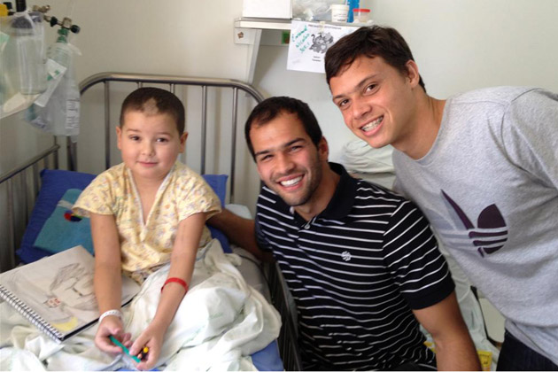 Os atletas do Internacional Muriel e Mike visitaram o setor de oncologia do Hospital da Criança Conceição, nesta terça-feira (20/08). Confira as fotos do encontro dos jogadores com as crianças.