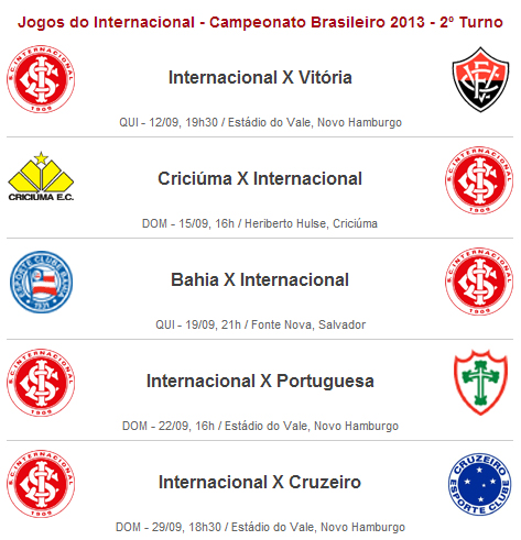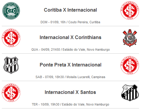 Confira os próximos jogos do Inter no campeonato com horário e local definidos pela CBF: