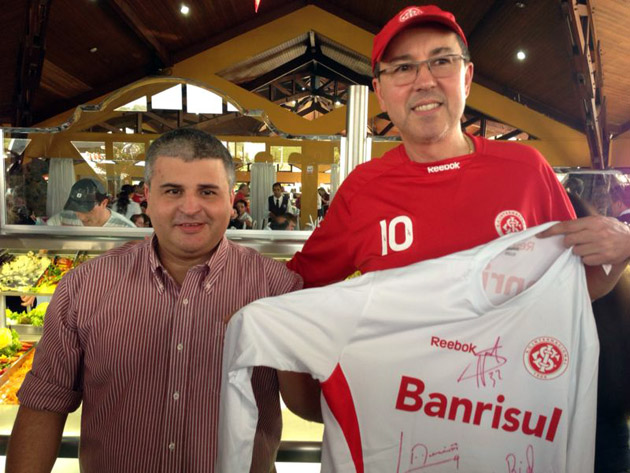Camisa autografada foi sorteada entre os presentes e entregue pelo vice-presidente de comunicação social, Norberto Guimarães (E)